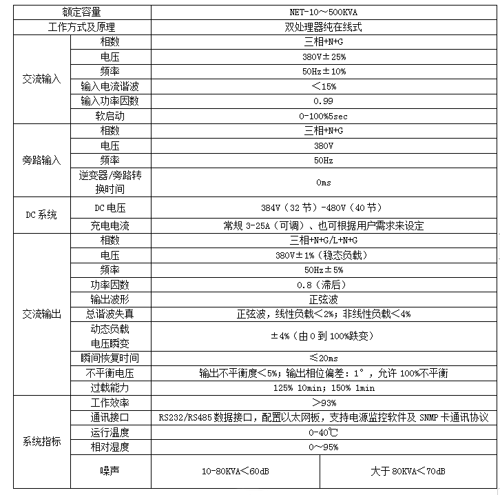恩億梯電源NET系列三相輸入三相輸出系列UPS產品采用了先進的數字信號處理器(DSP)、ASIC控制技術、IGBT功率器,可以充分平衡三相電網負載,瞬時波形控制方式,實現了輸入電流諧波小,輸入功率因數高;輸出電壓失真小、有高可靠性、高抗干擾性、高容錯功能,能防雷擊、抗高浪涌,過載能力強,并具備輸出短路保護,輸入過高壓保護,充電異常保護及電擊突波保護。是具有自主知識產權的全數字化交流不間斷電源系統。其優異的電氣性能,完善的智能監控及網絡管理,可靠的N+X冗余并機技術,為各行業用戶的網絡及計算機中心提供持久的高可靠性電力保護。